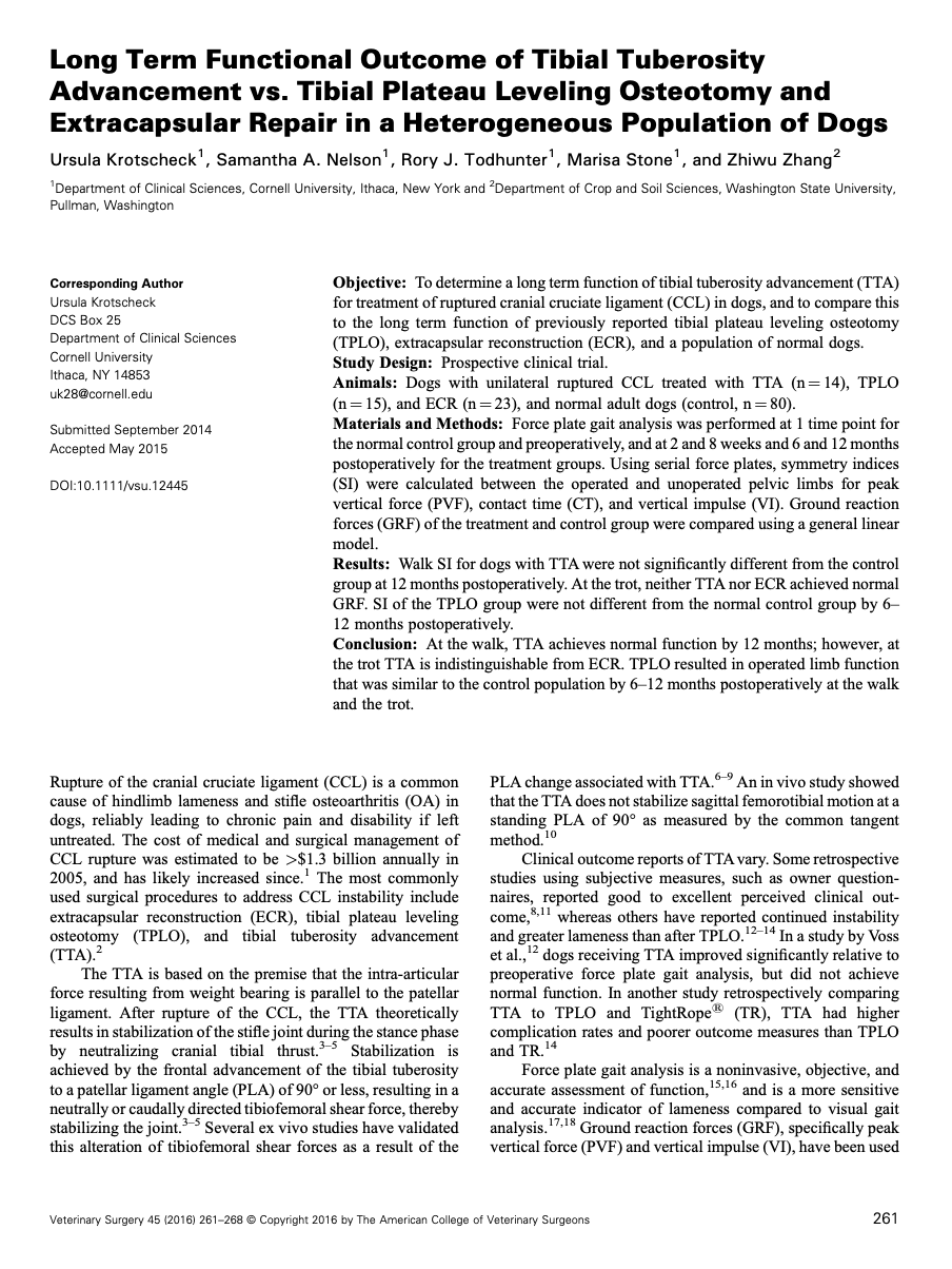 You already know your best choice depends primarily on your surgeon. If they’re an expert at TPLO, this the your best choice. If they have no experience of TPLO, this would be a poor choice. I’m trained to perform TPLO, TTA, CBLO and lateral suture, so what’s my best option? If I selected an operation based on surgical ease, TPLO would be my last choice. I personally found TTA easier to learn and quicker to perform. TPLO is my first choice because it's supported by superior outcome data. Do I ever recommend TTA? I sometimes recommend it for dogs who suffered a TPLO complication on the opposite knee. On rare occasions, I select TTA for dogs who are too aggressive to stay in hospital overnight. For these dogs, the first 24-hours can be easier after TTA. Otherwise, I almost always recommend TPLO. This 8-minute video explains why.